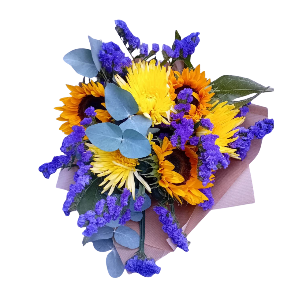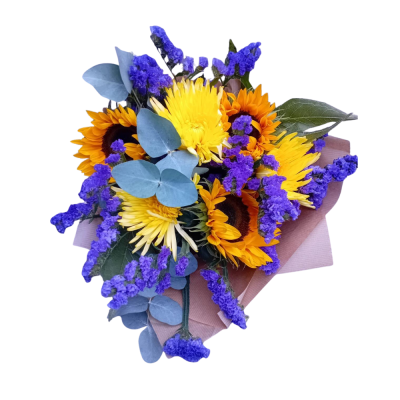 3 stems sunflowers, 3 stems chrysanthemum,sea lavender,Eucalyptus