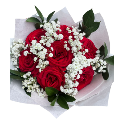 “The classic symbol of love, beautifully hand-tied.” A romantic classic, this bouquet of 7 rich red roses is hand-tied and accented with delicate gypsophilia and vibrant green foliage. Timeless and elegant, red roses are the ultimate symbol of love, making this bouquet the perfect choice for anniversaries, Valentine’s Day, or romantic surprises. An ideal option for anyone searching for red rose bouquets online in the UK.